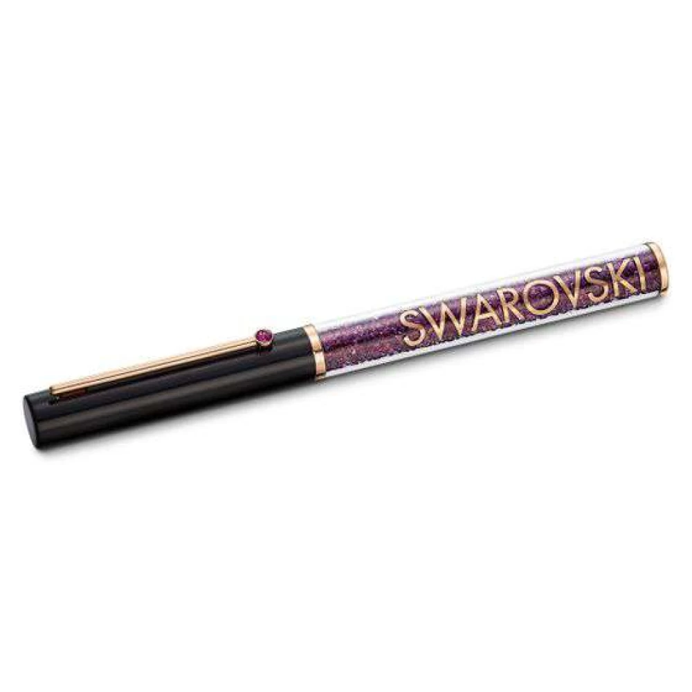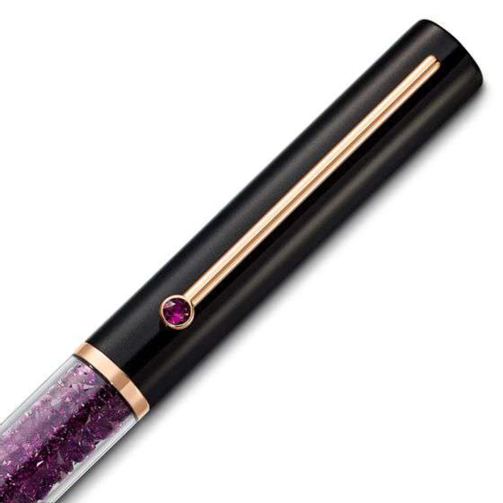 A caneta esferográfica da Swarovski inspirou-se nos códigos de cores e nas silhuetas da indústria cosmética, sendo perfeita para a mulher moderna que aprecia o estilo feminino, repleta de centenas de cristais roxos cintilantes através da emblemática técnica Crystalline. Tem uma tampa preta envernizada e marcante com um cristal roxo e possui recarga de tinta de elevada qualidade e substituível. As esferográficas Crystalline Gloss são um acessório sofisticado para o seu escritório e uma excelente ideia de presente.