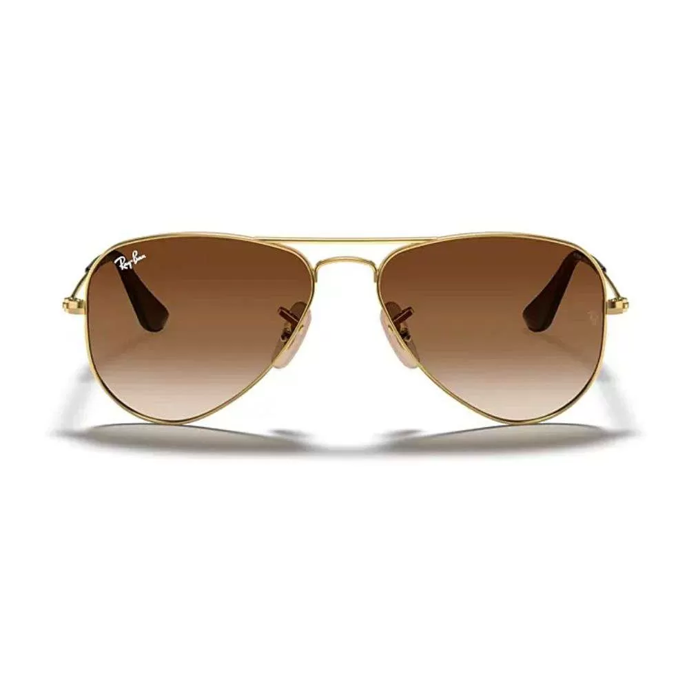 ay-Ban é uma marca de óculos de sol e óculos de grau, fundada em 1937 pela companhia norte-americana Bausch & Lomb. O nome dos óculos Ray-Ban vem de banir o sol, uma vez que bania o sol quando usados por pilotos americanos. O modelo RJ9506S vem com armação em metal dourado e lente marrom degradê.
