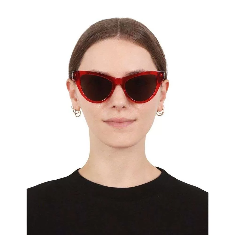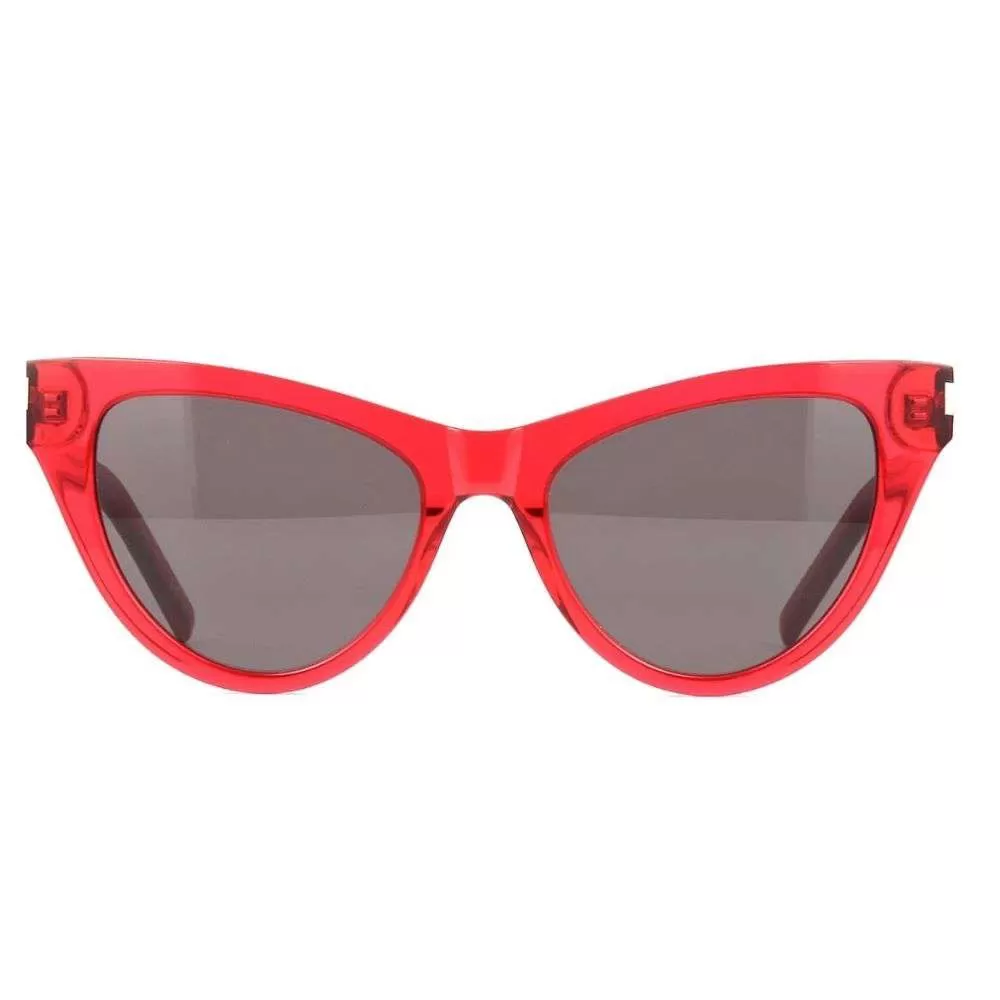 Óculos de Sol Saint Laurent  é um modelo da consagrada grife Francesa, o modelo une o formato cat em acetato vermelho e lentes flat cinza. A marca conta com design moderno e sofisticado. A grife teve início no ano de 1962 quando o estilista francês saiu da Dior e, com a ajuda financeira do companheiro Pierre Bergé fundou a aclamada grife. A marca é queridinha das fashionistas e está presente nas vitrines mais conceituadas do mundo.