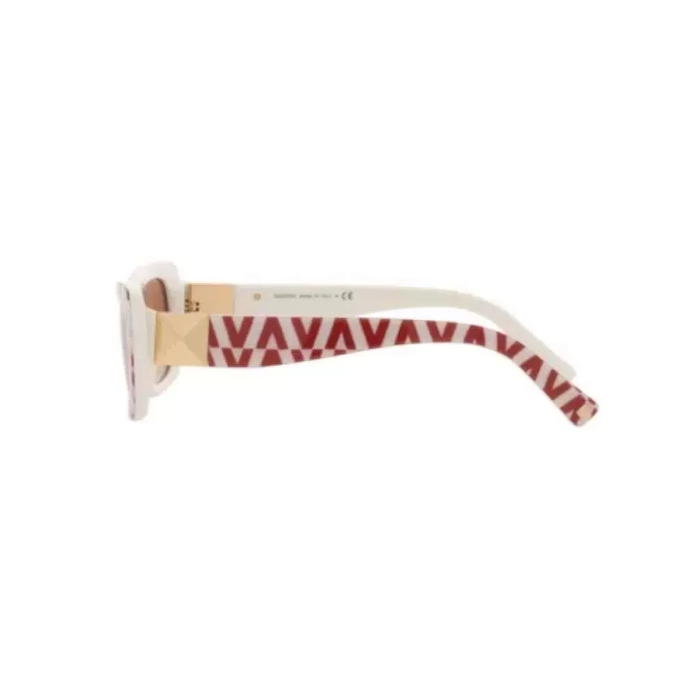 A consagrada grife Italiana Valentino traz desde os anos 50 sua tradição e alta qualidade.Nos anos 60 Valentino figurava entre os estilistas favoritos das mulheres mais bem vestidas do mundo. No eyewear trazem até a atualidade em seus designs e acabamentos a tradição italiana através de modelos icônicos e sofisticados.O modelo VA4096 tem um formato mini retangular todo em acetato off-white com V´s em vermelho e com lentes marrom.