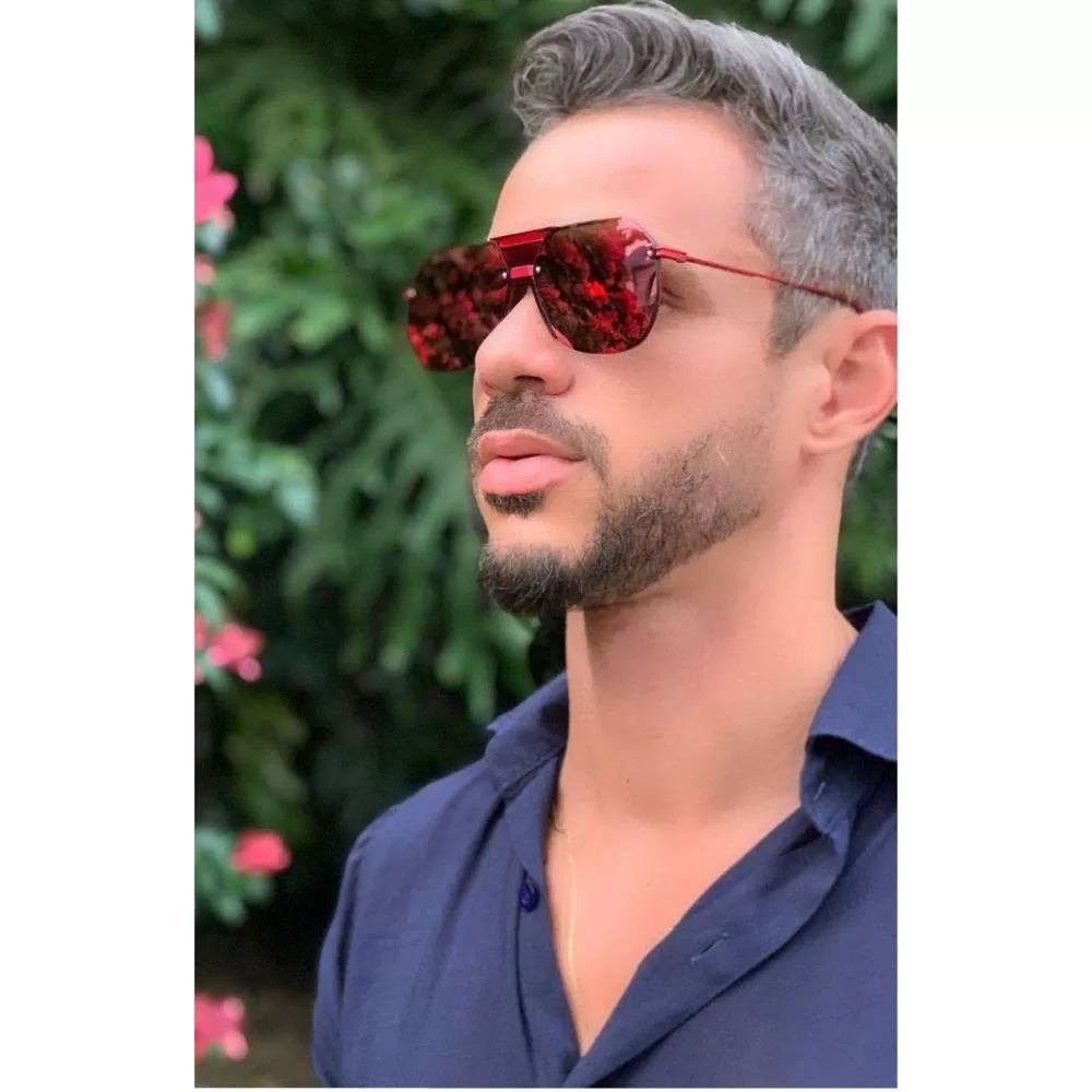O modelo com armação em metal vermelho e lentes espelhadas, alia os conceitos comtemporâneos da marca, com um shape robusto e fashionista, ao luxo e sofisticação que estão presentes nos pequenos detalhes da peça, como nas hastes que trazem as linhas caracteristicas da Grife Bottega Veneta em uma refinada ferragem nas laterais da peça. Este óculos com certeza é um dos acessórios de luxo perfeito para quem busca modernidade sofisticação.