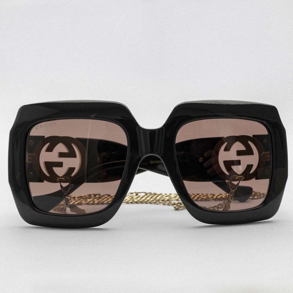 A consagrada grife Italiana Gucci foi fundada em 1921 em Florença, pelo designer de moda Guccio Gucci. A grife é conhecida por ser desejo pelo mundo todo e trazer em suas peças a alta qualidade dos artesões italianos. Os óculos de Sol trazem em suas características o acabamento fino e luxuoso proporcionando sofisticação e conforto. O GG1022s é a combinação do acetato robusto preto com lentes em tom de marrom que acompanha uma corrente super fashion e descolada deixando a peça ainda mais moderna e versátil.