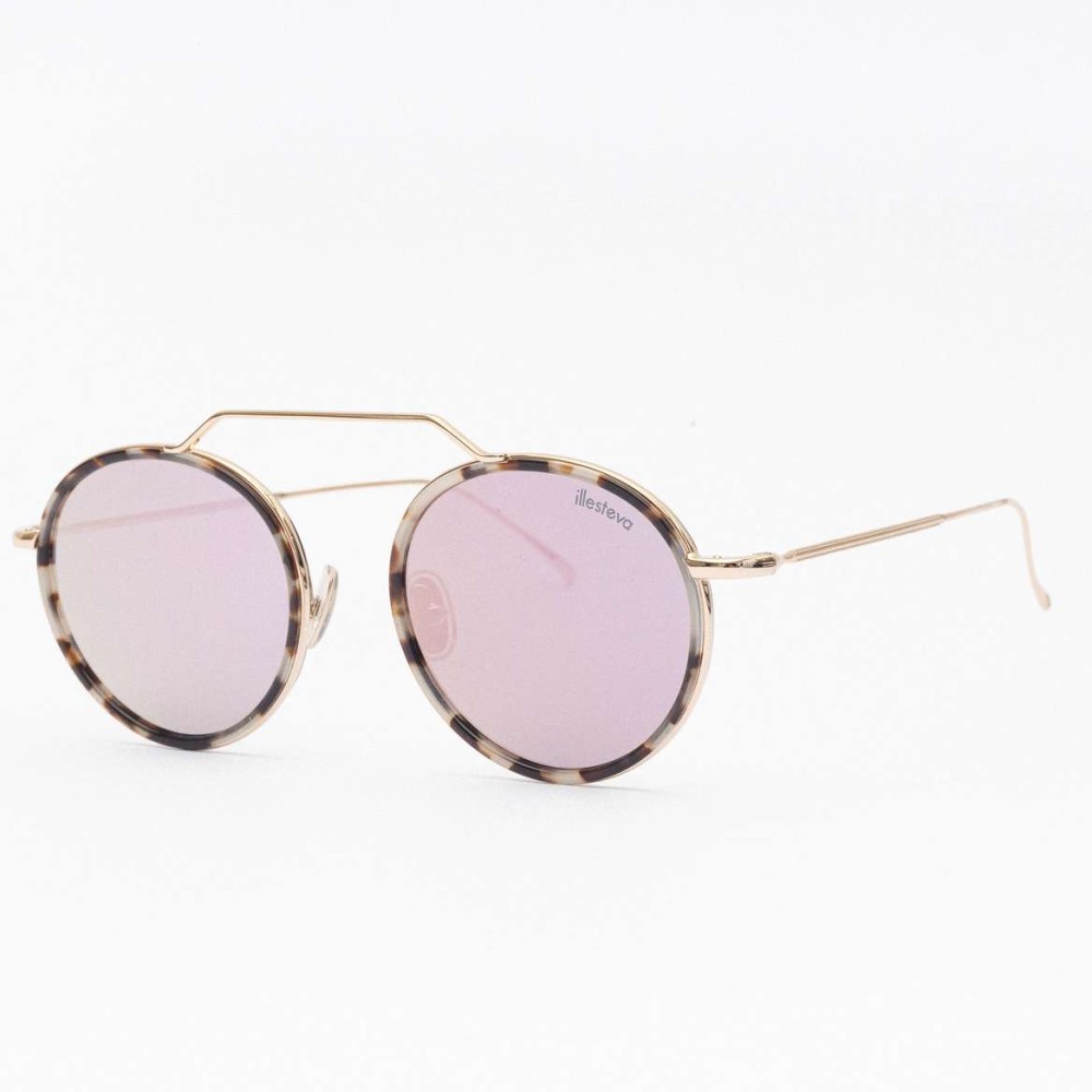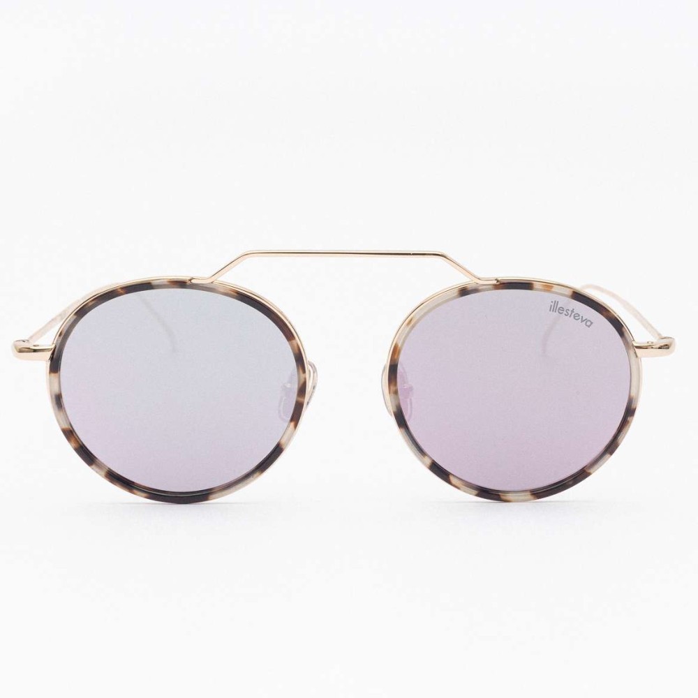 Óculos de Sol Illesteva Mykonos Ace é um modelo da consagrada grife italiana Illesteva, o modelo unissex une o formato redondo todo em metal na cor dourada e lentes espelhadas prata, tem suas lentes contornadas por acetato tortoise . A marca conta com design nova iorquino feito na Itália e França. O nome Illesteva nasceu da junção dos nomes de um artesão Italiano, chamado Luigi Esteva com sua paixão pela heroína de Casablanca, Ilsa Lund. Este modelo é perfeito para rostos ovais e de coração.