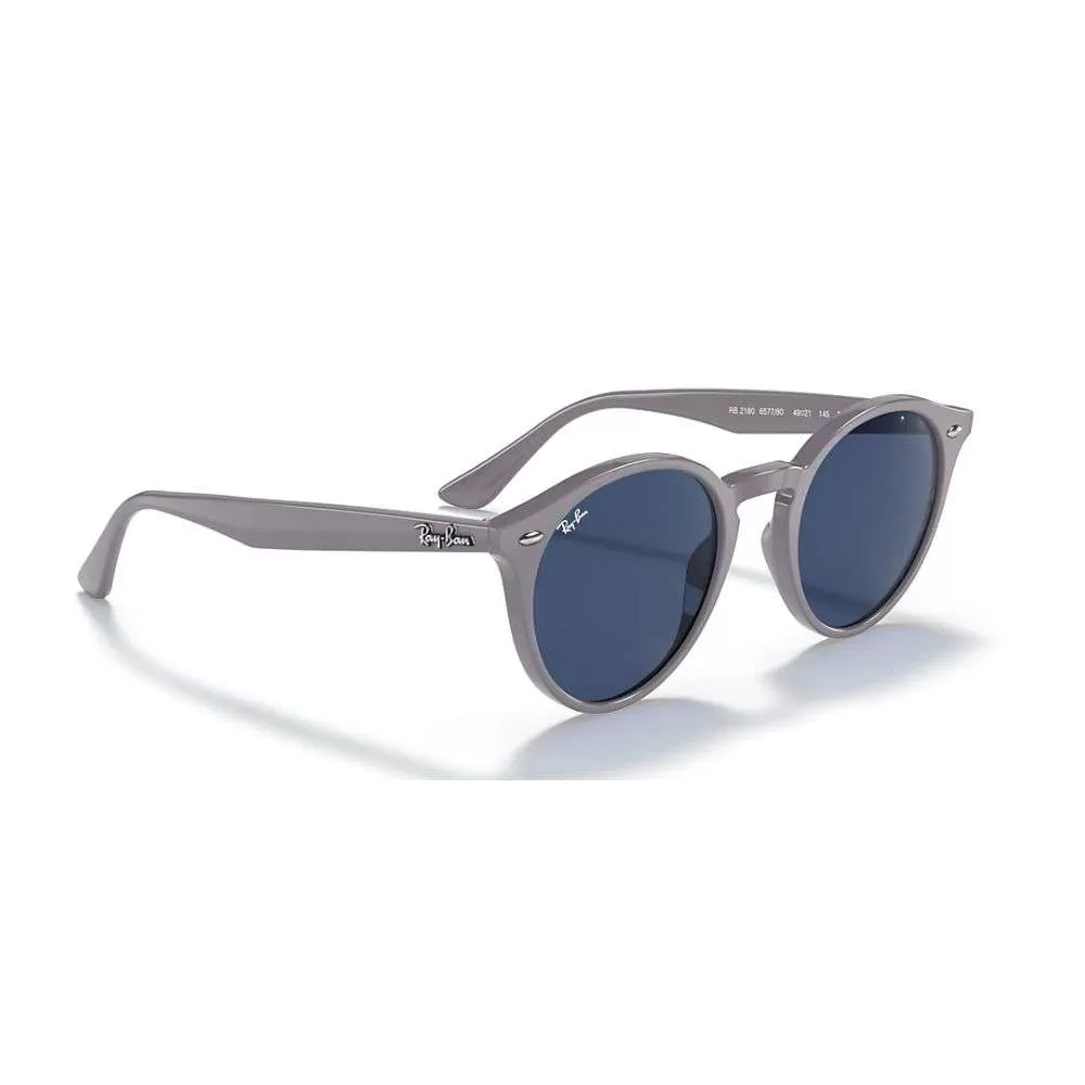 Ray-Ban é uma marca de óculos de sol e óculos de grau, fundada em 1937 pela companhia norte-americana Bausch & Lomb. O nome dos óculos Ray-Ban vem de banir o sol, uma vez que bania o sol quando usados por pilotos americanos. O modelo 2180 vem com a armação em acetato, ponte alta na cor cinza e lentes azul escuro classic.