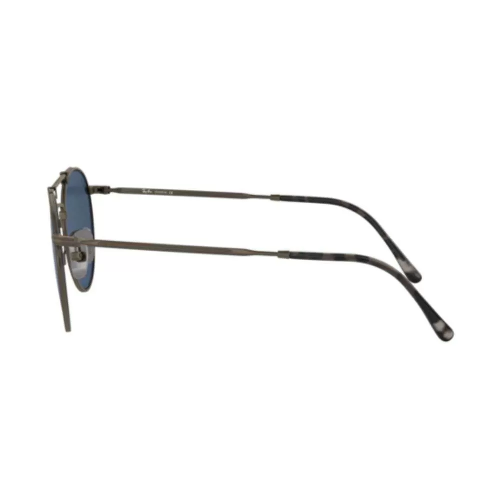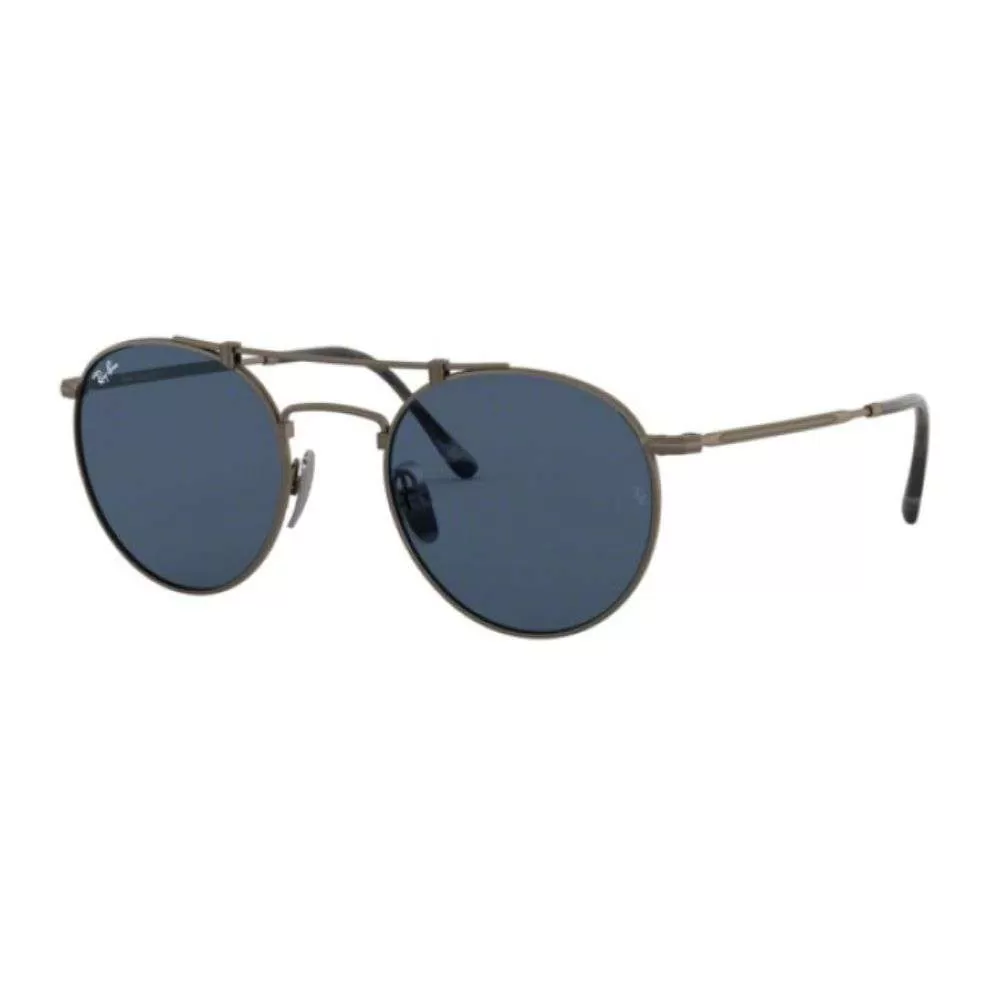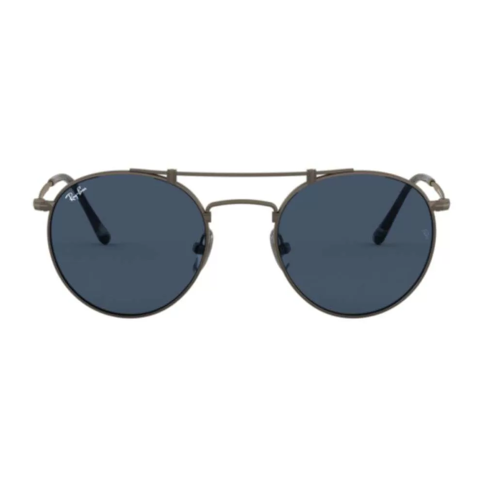 ay-Ban é uma marca de óculos de sol e óculos de grau, fundada em 1937 pela companhia norte-americana Bausch & Lomb. O nome dos óculos Ray-Ban vem de banir o sol, uma vez que bania o sol quando usados por pilotos americanos. O modelo RB8147 vem com armação em titanium em um tom de cobre e lentes azuis.