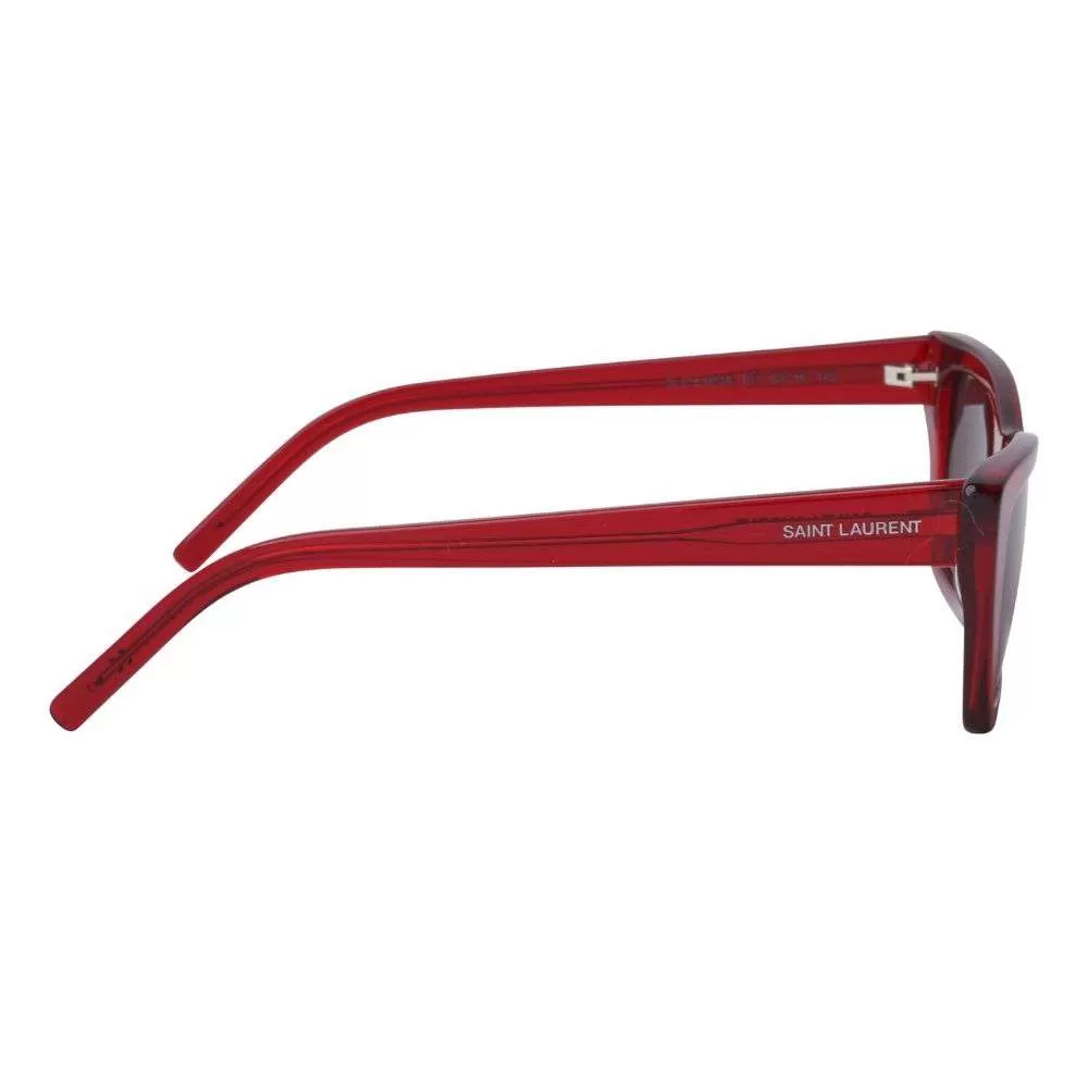 Óculos de Sol Saint Laurent Mica é um modelo da consagrada grife Francesa, o modelo une o formato cat em acetato vermelho e lentes flat cinza. A marca conta com design moderno e sofisticado. A grife teve início no ano de 1962 quando o estilista francês saiu da Dior e, com a ajuda financeira do companheiro Pierre Bergé fundou a aclamada grife. A marca é queridinha das fashionistas e está presente nas vitrines mais conceituadas do mundo.