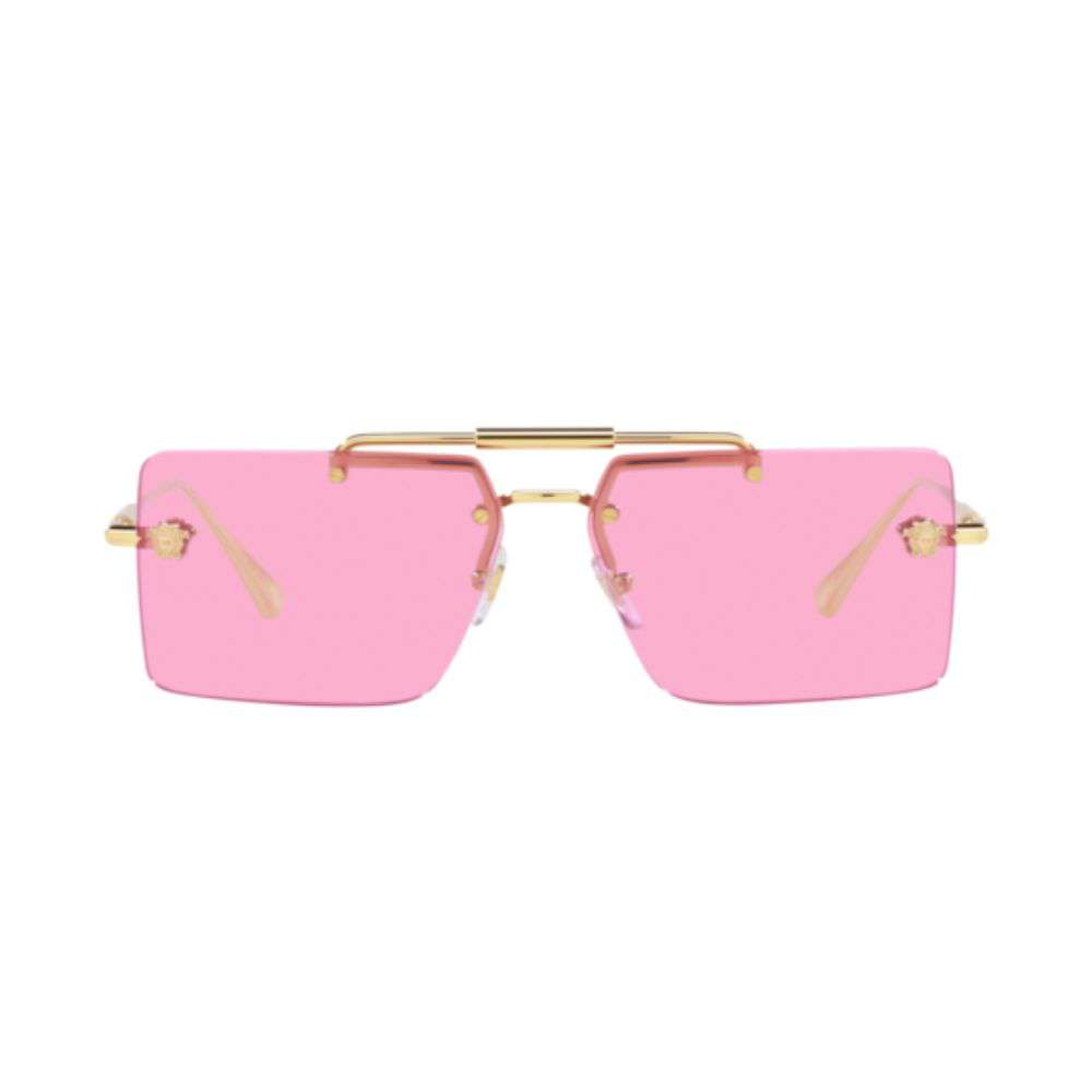 A icônica marca Italiana Versace é sinônimo de puro glamour. É mundialmente conhecida e adorada por todos e foi criada em 1968 pelo desing Gianni Versace em Milão. Conhecida por trabalhar com vestuário, acessório e jóias em 2003 expandiu seu negócio e começaram a exportar óculos de grau e sol. O Óculos de sol VE2245 possui lentes rosa polarizadas e armação dourada, ele conta com um shape quadrado moderno e hastes finas deixano a peça mais leve e confortavél.