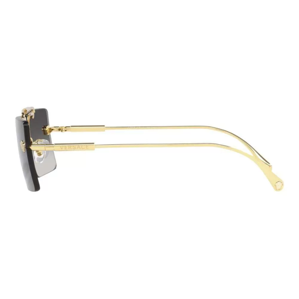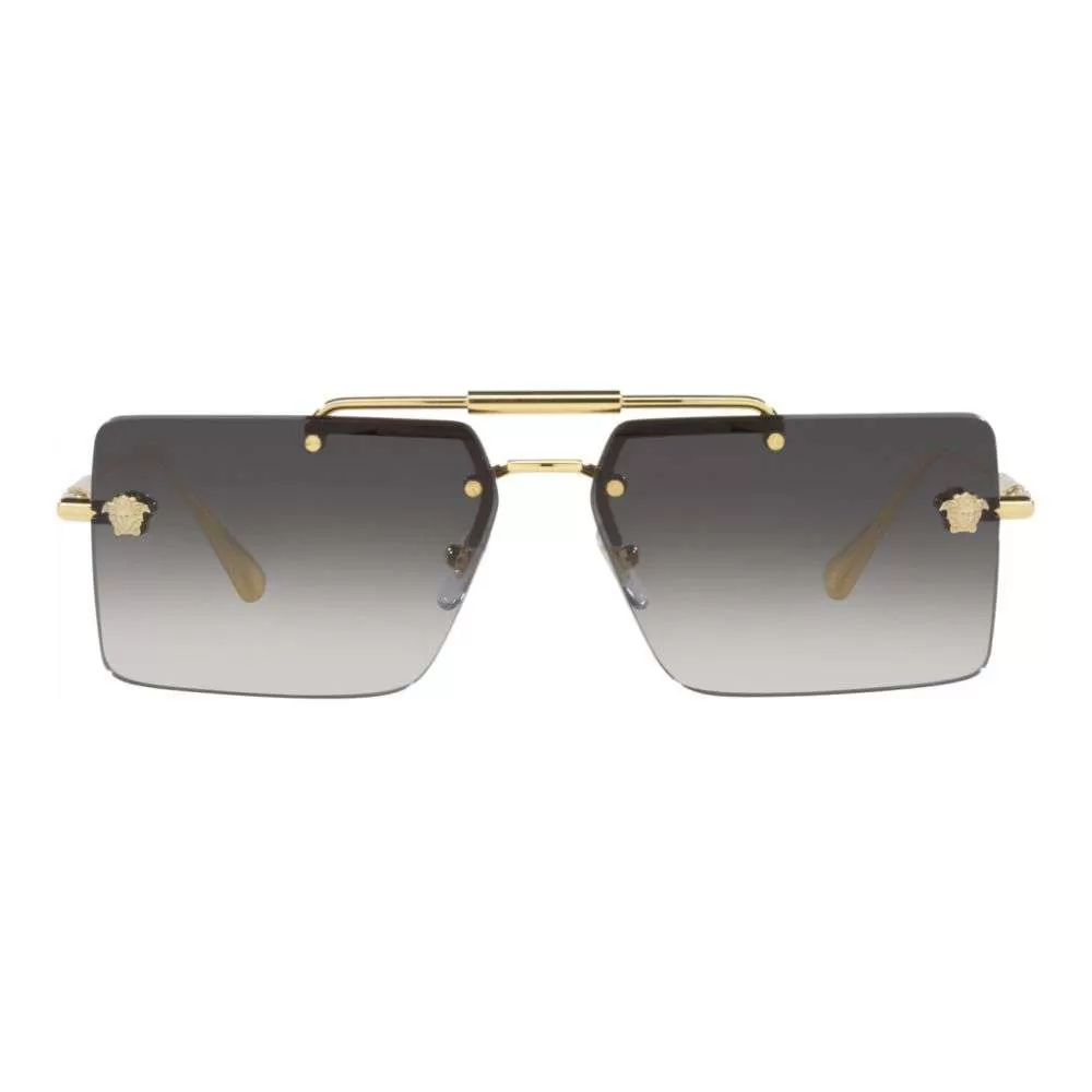 A icônica marca Italiana Versace é sinônimo de puro glamour.È mundialmente conhecida e adorada por todos e foi criada em 1968 pelo desing Gianni Versace em Milão. Conhecida por trabalhar com vestuário, acessório e jóias em 2003 expandiu seu negócio e começaram a exportar óculos de grau e sol.O Óculos de sol VE2245 tem a armação toda em metal dourado, seu design é reto, lentes degradê em tom de cinza e hastes finas com o nome da marca gravado..