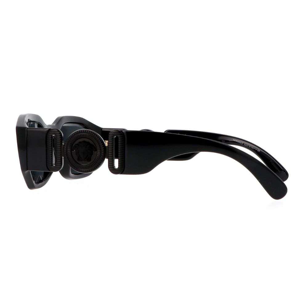 A icônica marca Italiana Versace é sinônimo de puro glamour.È mundialmente conhecida e adorada por todos e foi criada em 1968 pelo desing Gianni Versace em Milão. Conhecida por trabalhar com vestuário, acessório e jóias em 2003 expandiu seu negócio e começaram a exportar óculos de grau e sol.O Óculos de sol VE4361 tem a armação toda em acetato preto, seu design é reto, lentes cinza e hastes largas com a icônica medusa da grife em preto fosco..