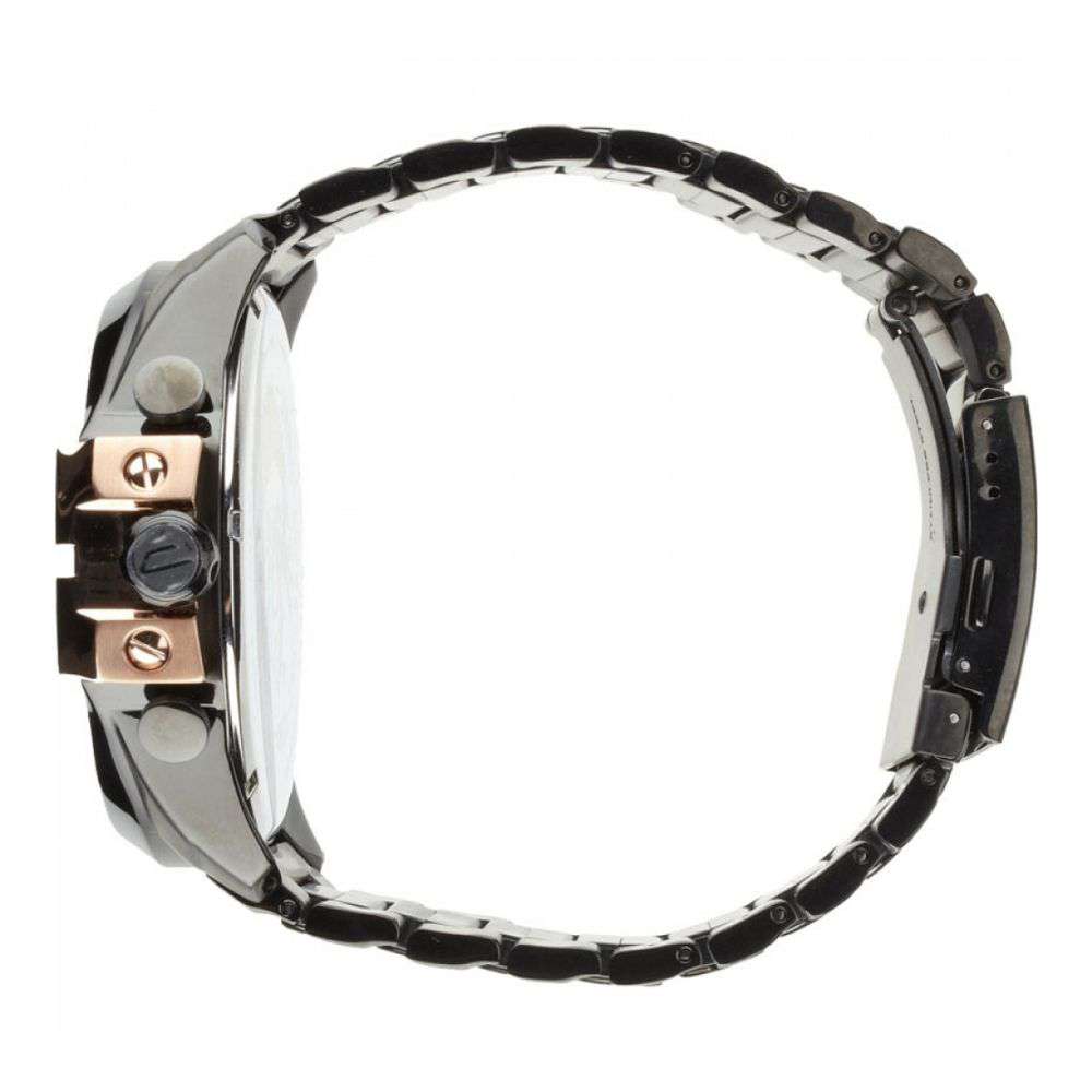 Caixa do relógio em aço com acabamento brilhoso preto.