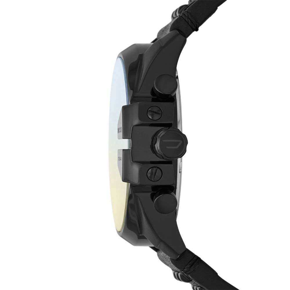 Caixa do relógio em aço com acabamento brilhoso preto.