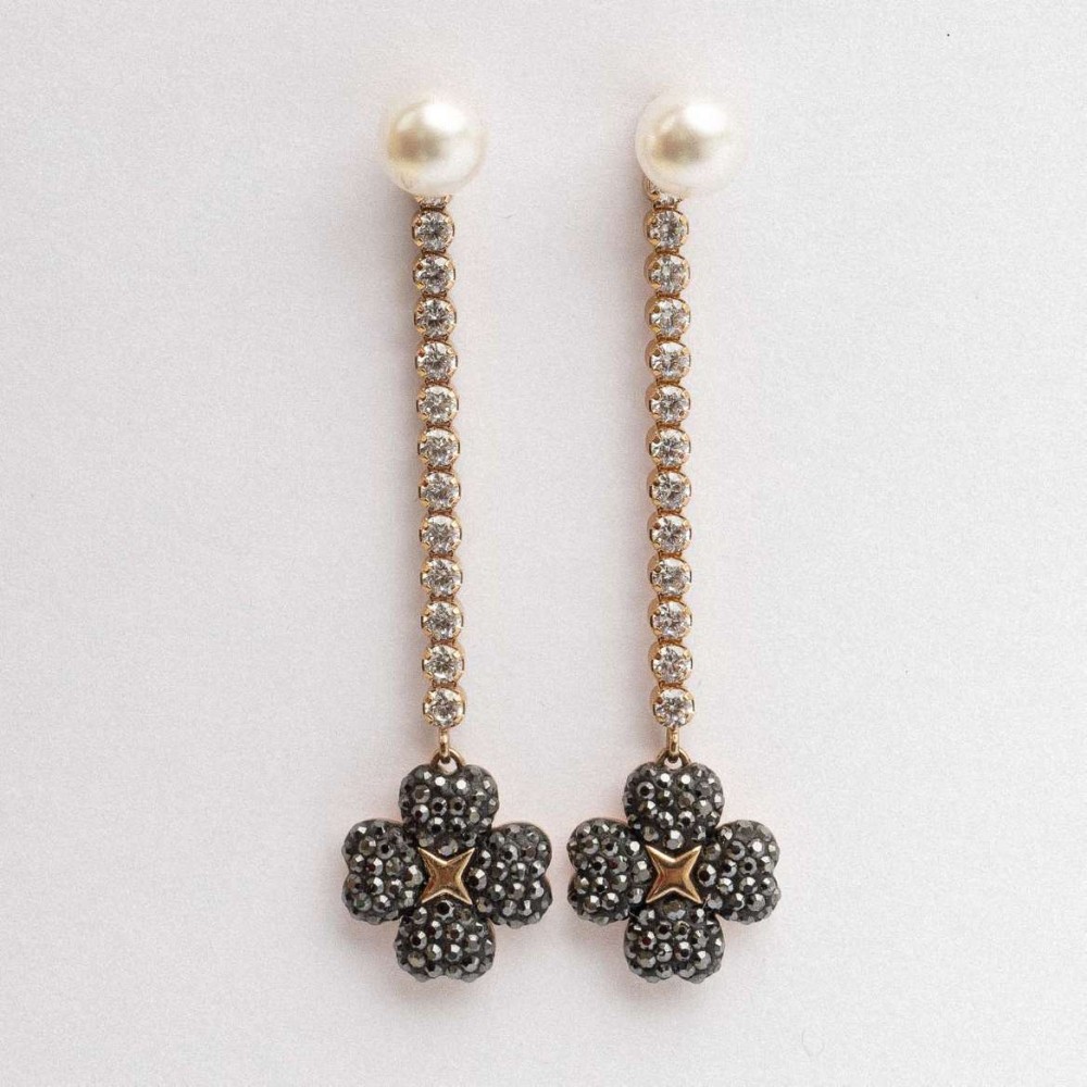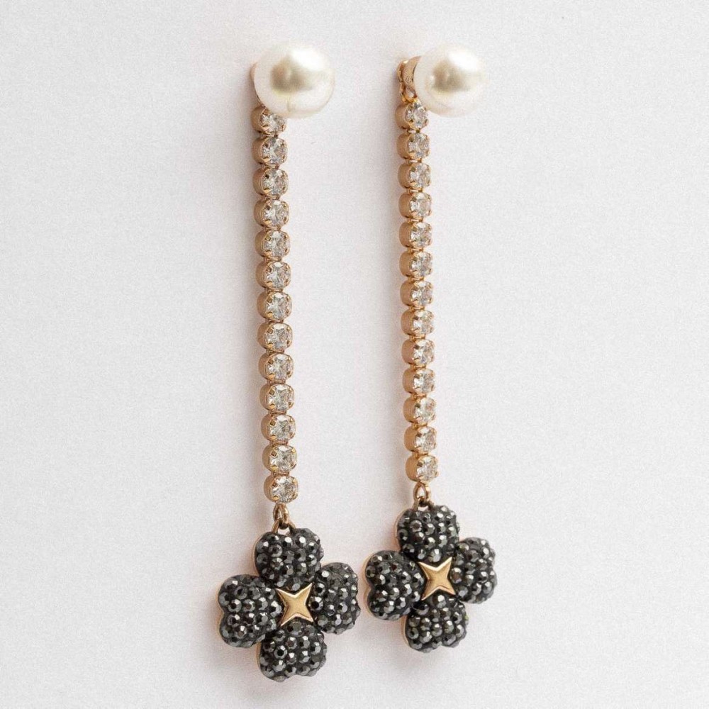 Quando os símbolos encantadores encontram um design comtemporâneo divertido, o resultado é de tirar o fôlego. Este versátil par de brincos da Swarovski pode ser usado com pendentes de trevos ou simplismente como um simples brincos de pérolas de cristal. Uma infinidade de cristais swarovski adiciona um brilho magnifico a este design revestido em tom de ouro rosa. Uma ótima ideia para deixar o seu look ainda mais sofisticado.