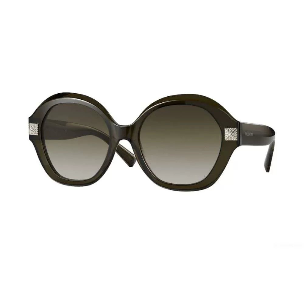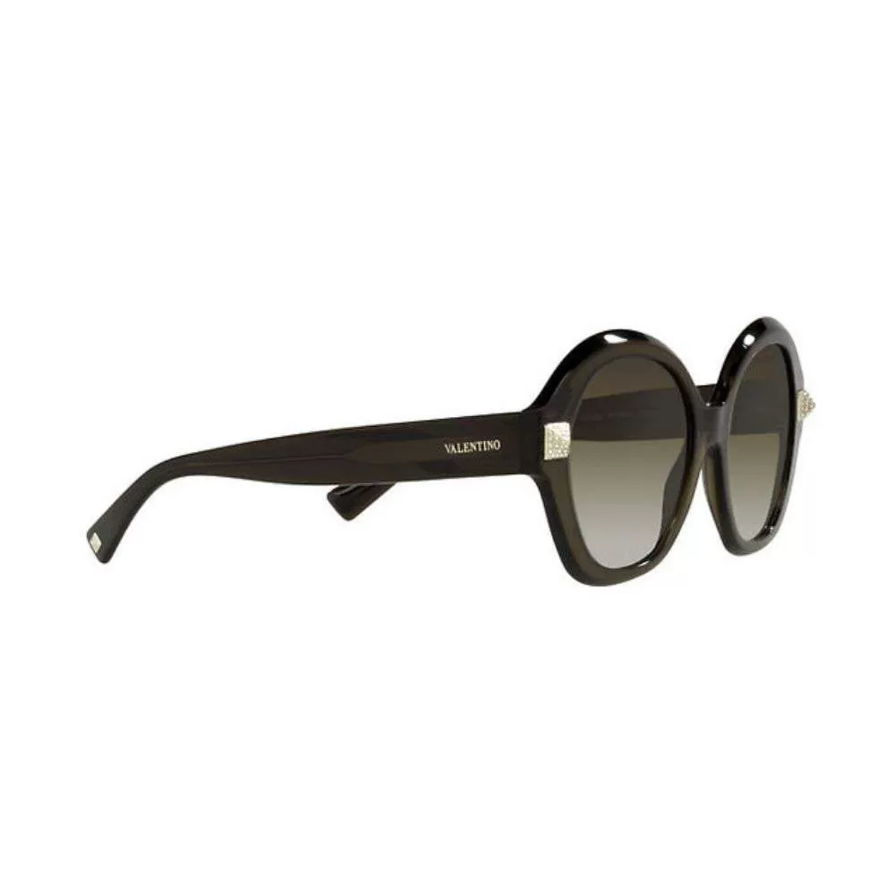 A consagrada grife Italiana Valentino traz desde os anos 50 sua tradição e alta qualidade. Nos anos 60 Valentino figurava entre os estilistas favoritos das mulheres mais bem vestidas do mundo. No eyewear trazem até a atualidade em seus designs e acabamentos a tradição italiana através de modelos icônicos e sofisticados. O modelo VA4086 tem um formato elegante todo em acetato marrom translúcido, na frontal da peça encontra-se studs cravejados com cristais austríacos, e para completar ele conta com lentes marrom degradê.